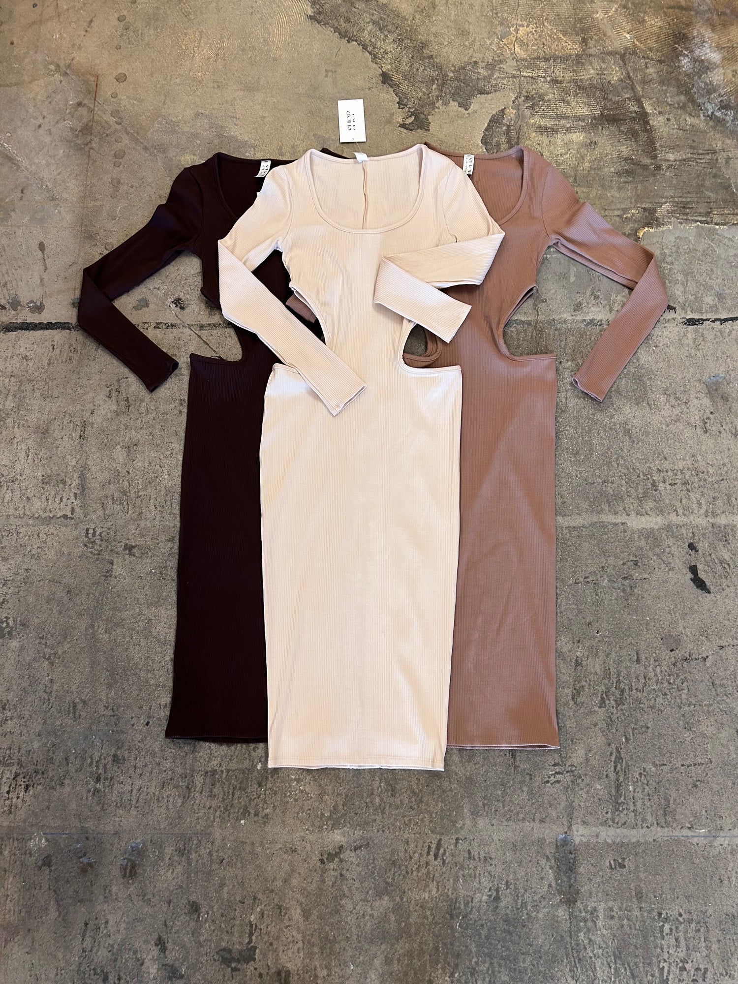 LONG SLEEVE RIBBED CUT OUT DRESS