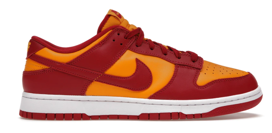 The Nike Dunk Low Midas Gold features a Midas Gold leather upper with Tough Red overlays and Swooshes. From there, matching woven tongue tags and soles complete the design.
